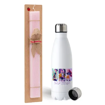 HUNTR/X K-pop girl group, Πασχαλινή Λαμπάδα με μεταλλικό παγούρι ανοξείδωτο (750ml) & κερί αρωματικό πλακέ (30cm) (ΡΟΖ)