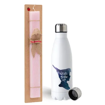Never Grow UP, Πασχαλινή Λαμπάδα με μεταλλικό παγούρι ανοξείδωτο (750ml) & κερί αρωματικό πλακέ (30cm) (ΡΟΖ)