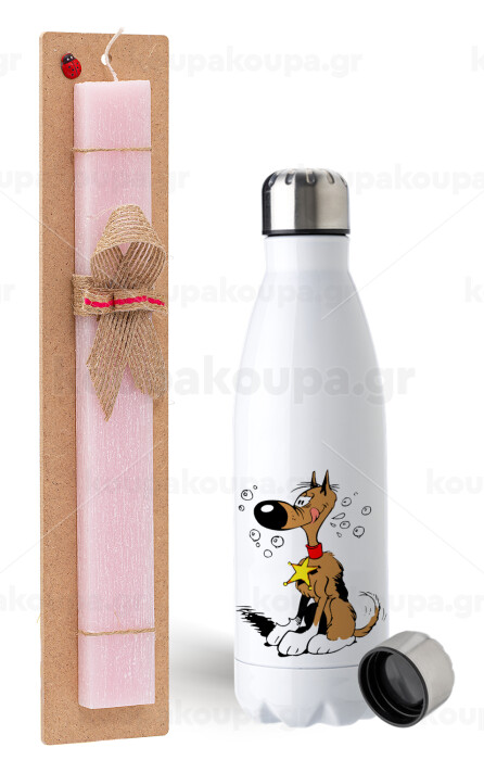 Rantanplan (Ρανταπλάν), Πασχαλινή Λαμπάδα με μεταλλικό παγούρι ανοξείδωτο (750ml) & κερί αρωματικό πλακέ (30cm) (ΡΟΖ)