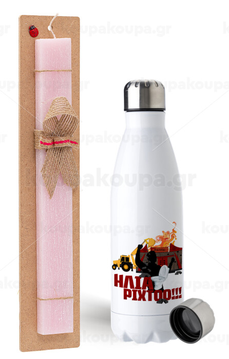 Ηλία ρίχτοοο!!!, Πασχαλινή Λαμπάδα με μεταλλικό παγούρι ανοξείδωτο (750ml) & κερί αρωματικό πλακέ (30cm) (ΡΟΖ)
