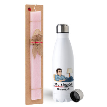ΠΩΣ ΤΑ ΒΡΙΣΚΟΥΝ ΟΙ ΒΛΑ....ΝΟΙ ΜΕΤΑΞΥ ΤΟΥΣ, ΕΙΝΑΙ ΤΡΟΜΕΡΟ!!!, Πασχαλινή Λαμπάδα με μεταλλικό παγούρι ανοξείδωτο (750ml) & κερί αρωματικό πλακέ (30cm) (ΡΟΖ)