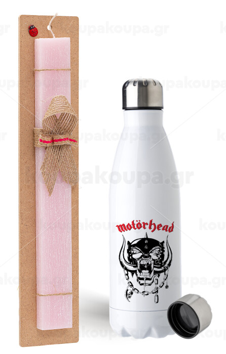 motorhead, Πασχαλινή Λαμπάδα με μεταλλικό παγούρι ανοξείδωτο (750ml) & κερί αρωματικό πλακέ (30cm) (ΡΟΖ)