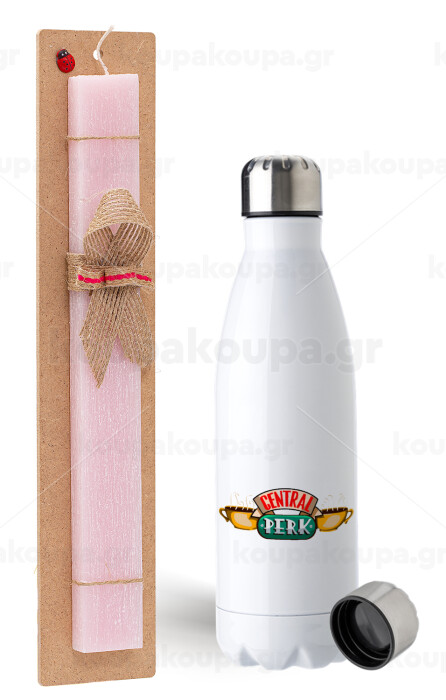 Central perk, Πασχαλινή Λαμπάδα με μεταλλικό παγούρι ανοξείδωτο (750ml) & κερί αρωματικό πλακέ (30cm) (ΡΟΖ)