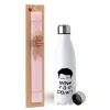Friends how you doin?, Πασχαλινή Λαμπάδα με μεταλλικό παγούρι ανοξείδωτο (750ml) & κερί αρωματικό πλακέ (30cm) (ΡΟΖ)