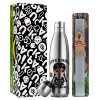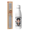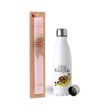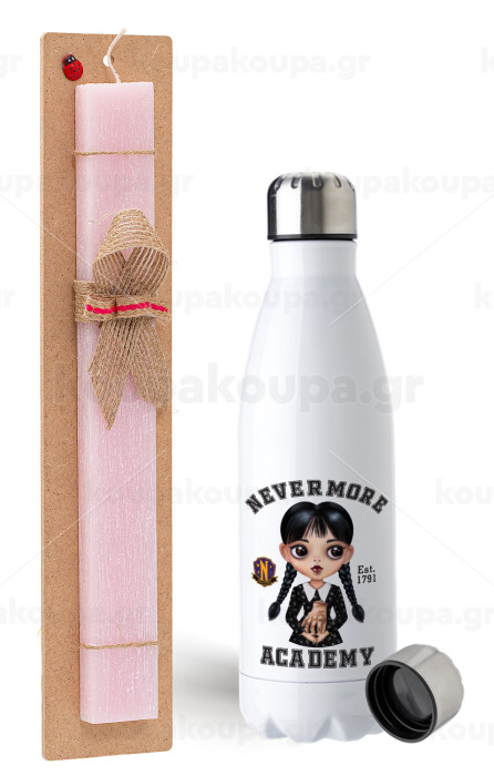 Wednesday Adams, nevermore, Πασχαλινή Λαμπάδα με μεταλλικό παγούρι ανοξείδωτο (750ml) & κερί αρωματικό πλακέ (30cm) (ΡΟΖ)