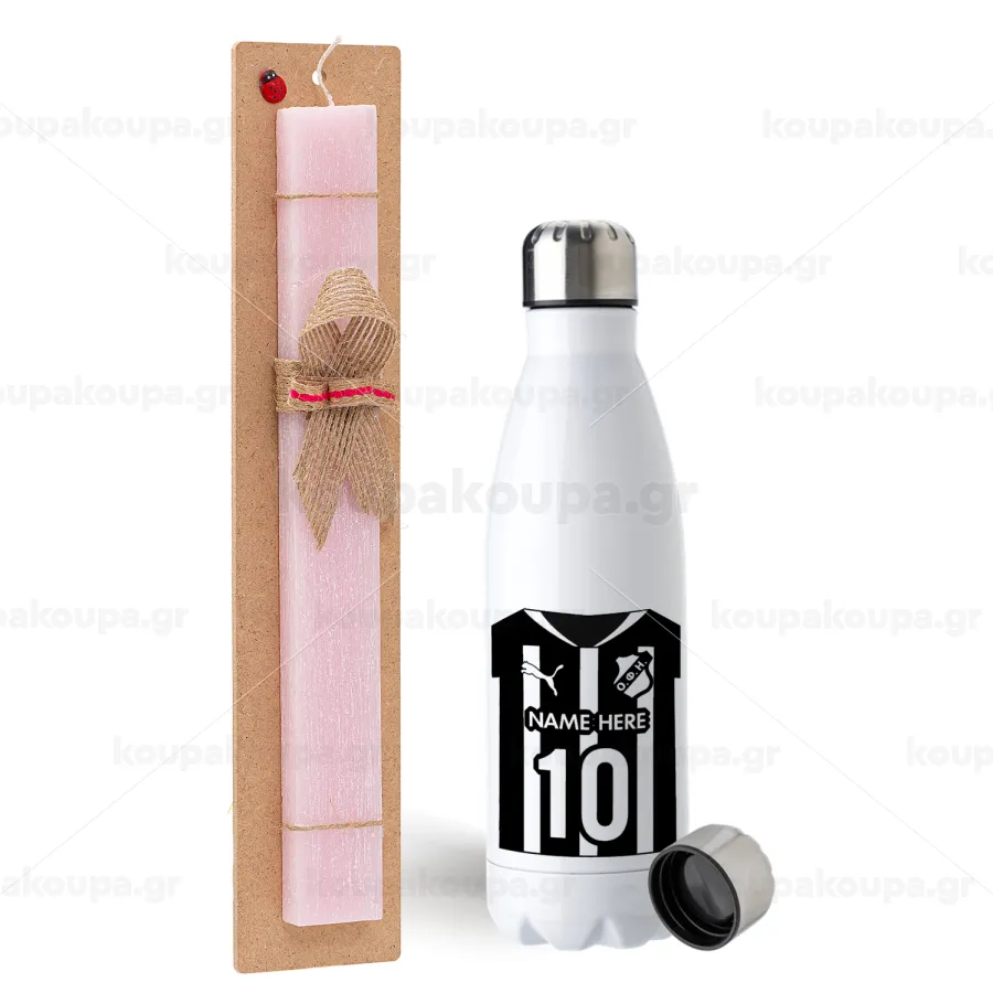 ΟΦΗ εμφάνιση, Πασχαλινή Λαμπάδα με μεταλλικό παγούρι ανοξείδωτο (750ml) & κερί αρωματικό πλακέ (30cm) (ΡΟΖ)