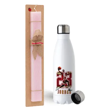 Jordan 23, Πασχαλινή Λαμπάδα με μεταλλικό παγούρι ανοξείδωτο (750ml) & κερί αρωματικό πλακέ (30cm) (ΡΟΖ)