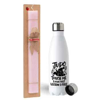 Judo Touch Me And Your First Lesson Is Free, Πασχαλινή Λαμπάδα με μεταλλικό παγούρι ανοξείδωτο (750ml) & κερί αρωματικό πλακέ (30cm) (ΡΟΖ)