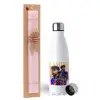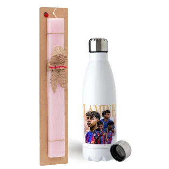 lamine yamal FCB, Πασχαλινή Λαμπάδα με μεταλλικό παγούρι ανοξείδωτο (750ml) & κερί αρωματικό πλακέ (30cm) (ΡΟΖ)