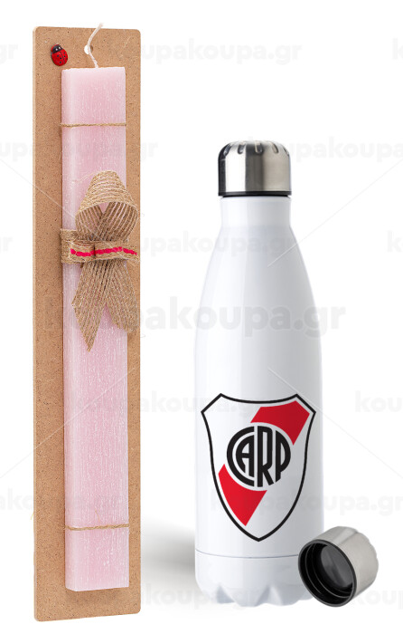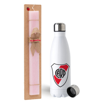 River Plate, Πασχαλινή Λαμπάδα με μεταλλικό παγούρι ανοξείδωτο (750ml) & κερί αρωματικό πλακέ (30cm) (ΡΟΖ)