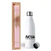 Halloween Friends, Πασχαλινή Λαμπάδα με μεταλλικό παγούρι ανοξείδωτο (750ml) & κερί αρωματικό πλακέ (30cm) (ΡΟΖ)
