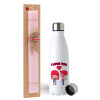 Couple, I love you, Πασχαλινή Λαμπάδα με μεταλλικό παγούρι ανοξείδωτο (750ml) & κερί αρωματικό πλακέ (30cm) (ΡΟΖ)