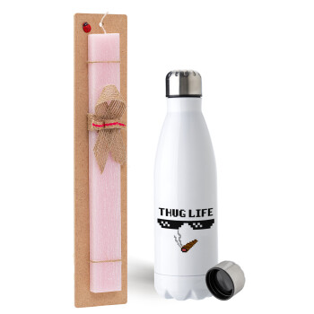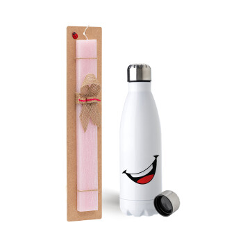 Πασχαλινή Λαμπάδα με μεταλλικό παγούρι ανοξείδωτο (750ml) & κερί αρωματικό πλακέ (30cm) (ΡΟΖ) με θέμα Emoji / Avatars