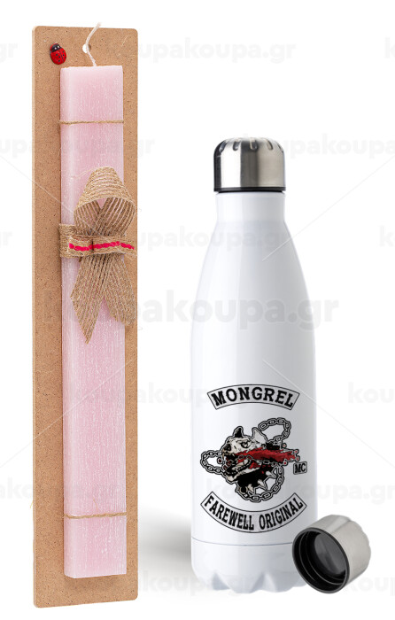 Day's Gone, mongrel farewell original, Πασχαλινή Λαμπάδα με μεταλλικό παγούρι ανοξείδωτο (750ml) & κερί αρωματικό πλακέ (30cm) (ΡΟΖ)