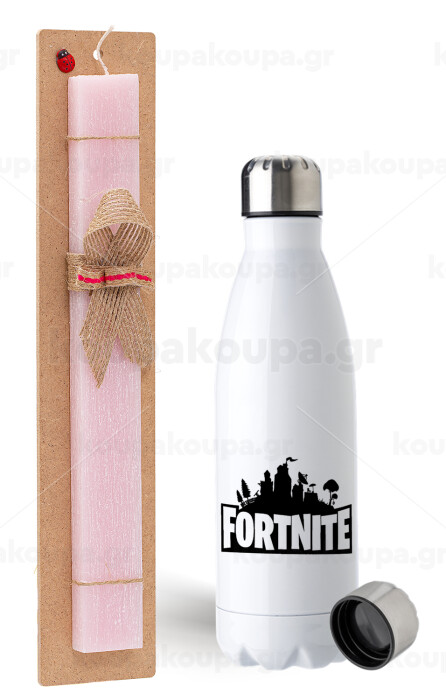 Fortnite, Πασχαλινή Λαμπάδα με μεταλλικό παγούρι ανοξείδωτο (750ml) & κερί αρωματικό πλακέ (30cm) (ΡΟΖ)