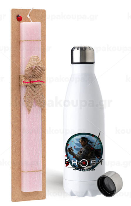 Ghost of Tsushima, Πασχαλινή Λαμπάδα με μεταλλικό παγούρι ανοξείδωτο (750ml) & κερί αρωματικό πλακέ (30cm) (ΡΟΖ)