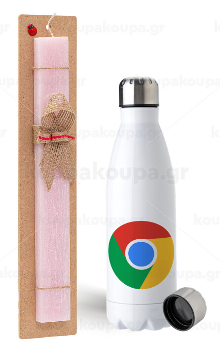 Chrome, Πασχαλινή Λαμπάδα με μεταλλικό παγούρι ανοξείδωτο (750ml) & κερί αρωματικό πλακέ (30cm) (ΡΟΖ)