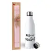 Believe in your self, Πασχαλινή Λαμπάδα με μεταλλικό παγούρι ανοξείδωτο (750ml) & κερί αρωματικό πλακέ (30cm) (ΡΟΖ)