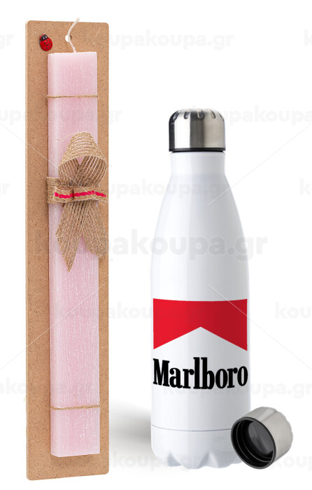 Marlboro, Πασχαλινή Λαμπάδα με μεταλλικό παγούρι ανοξείδωτο (750ml) & κερί αρωματικό πλακέ (30cm) (ΡΟΖ)