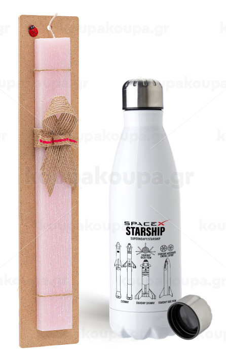Space X, Πασχαλινή Λαμπάδα με μεταλλικό παγούρι ανοξείδωτο (750ml) & κερί αρωματικό πλακέ (30cm) (ΡΟΖ)