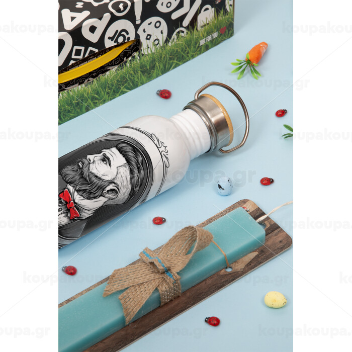Barber shop, Πασχαλινή Λαμπάδα με παγούρι μεταλλικό (620ml, stainless steel) & κερί αρωματικό πλακέ (30cm) (ΤΙΡΚΟΥΑΖ)