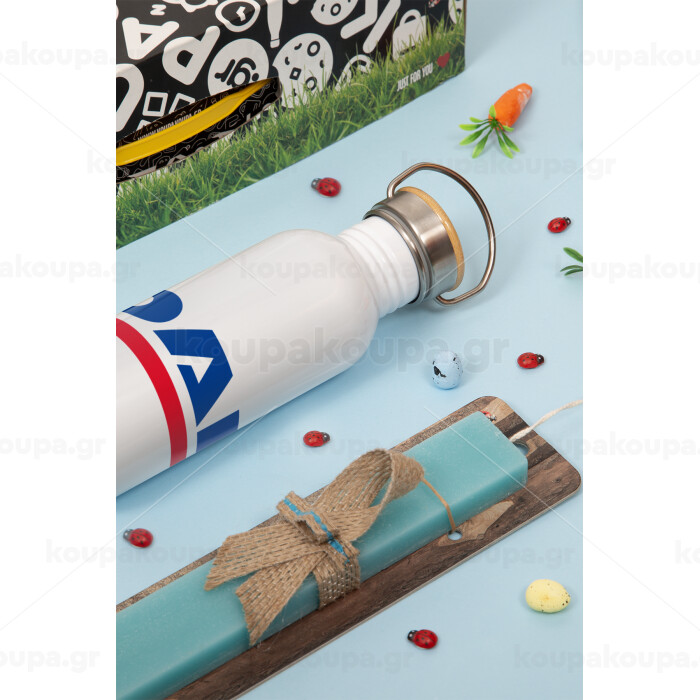 DAF, Πασχαλινή Λαμπάδα με παγούρι μεταλλικό (620ml, stainless steel) & κερί αρωματικό πλακέ (30cm) (ΤΙΡΚΟΥΑΖ)