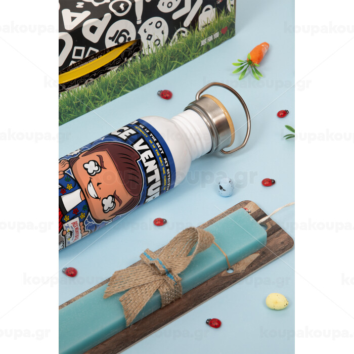 Ace Ventura: Pet Detective, Πασχαλινή Λαμπάδα με παγούρι μεταλλικό (620ml, stainless steel) & κερί αρωματικό πλακέ (30cm) (ΤΙΡΚΟΥΑΖ)