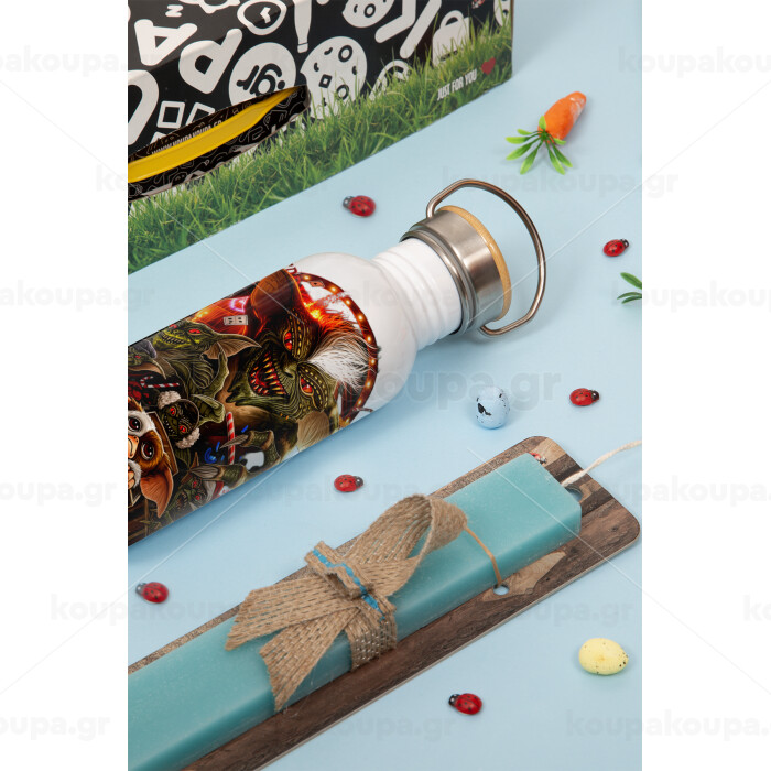 Gremlins, Πασχαλινή Λαμπάδα με παγούρι μεταλλικό (620ml, stainless steel) & κερί αρωματικό πλακέ (30cm) (ΤΙΡΚΟΥΑΖ)