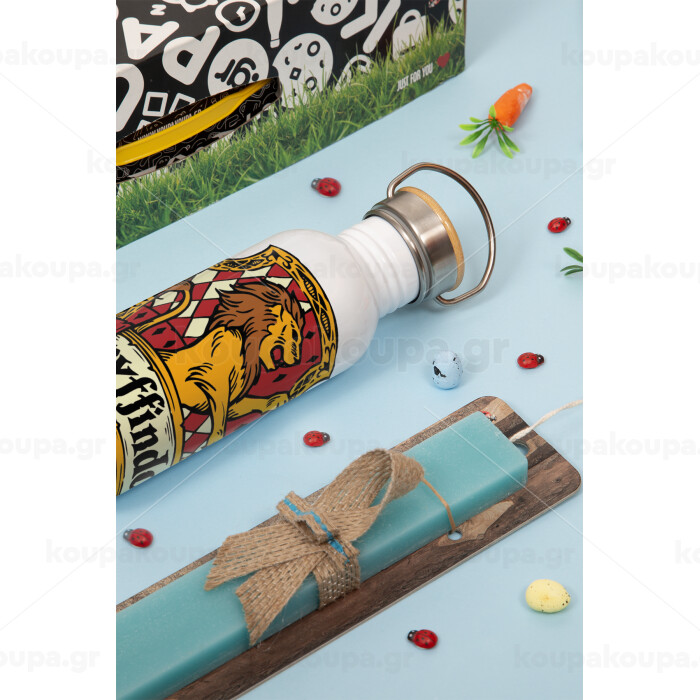 Gryffindor, Harry potter, Πασχαλινή Λαμπάδα με παγούρι μεταλλικό (620ml, stainless steel) & κερί αρωματικό πλακέ (30cm) (ΤΙΡΚΟΥΑΖ)
