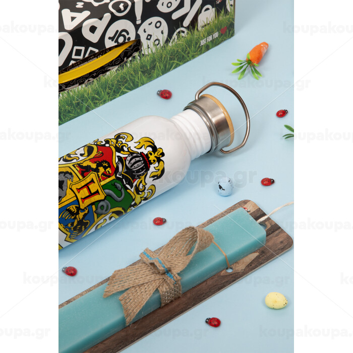Hogwart's, Πασχαλινή Λαμπάδα με παγούρι μεταλλικό (620ml, stainless steel) & κερί αρωματικό πλακέ (30cm) (ΤΙΡΚΟΥΑΖ)