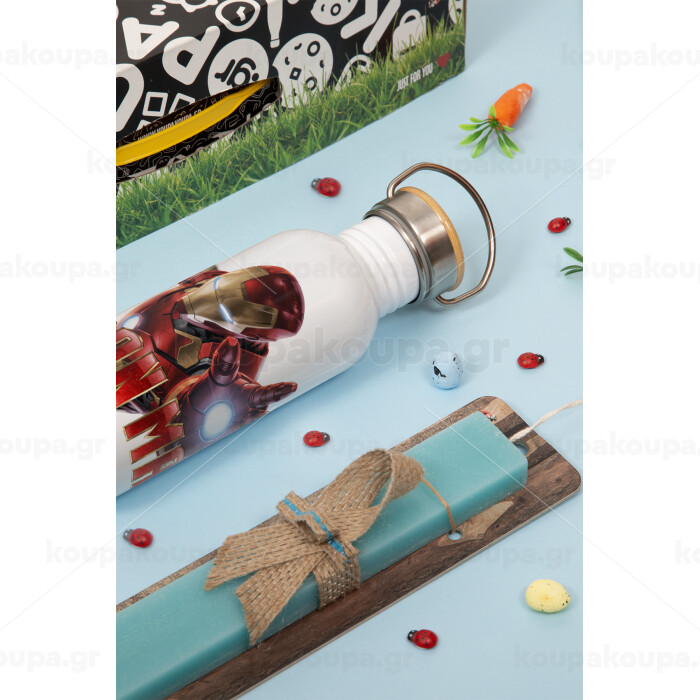 Ironman, Πασχαλινή Λαμπάδα με παγούρι μεταλλικό (620ml, stainless steel) & κερί αρωματικό πλακέ (30cm) (ΤΙΡΚΟΥΑΖ)
