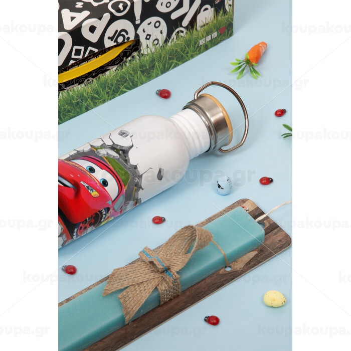 Brick McQueen, Πασχαλινή Λαμπάδα με παγούρι μεταλλικό (620ml, stainless steel) & κερί αρωματικό πλακέ (30cm) (ΤΙΡΚΟΥΑΖ)