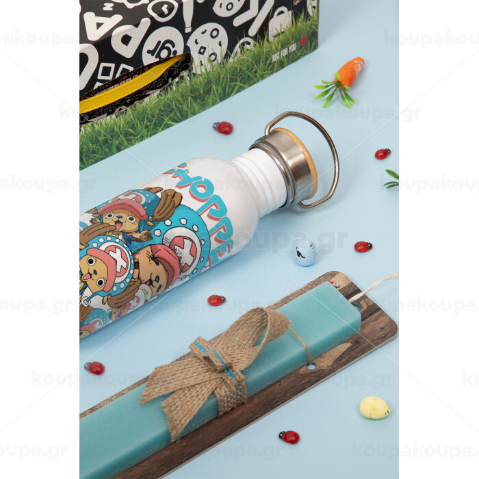 Chopper One Piece, Πασχαλινή Λαμπάδα με παγούρι μεταλλικό (620ml, stainless steel) & κερί αρωματικό πλακέ (30cm) (ΤΙΡΚΟΥΑΖ)