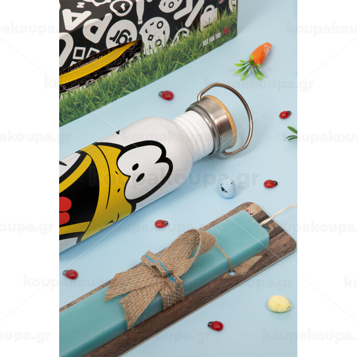 Daffy Duck, Πασχαλινή Λαμπάδα με παγούρι μεταλλικό (620ml, stainless steel) & κερί αρωματικό πλακέ (30cm) (ΤΙΡΚΟΥΑΖ)