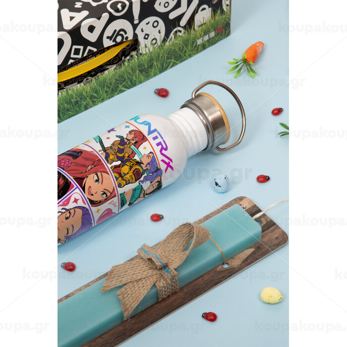 Huntrix Kpop Girls, Πασχαλινή Λαμπάδα με παγούρι μεταλλικό (620ml, stainless steel) & κερί αρωματικό πλακέ (30cm) (ΤΙΡΚΟΥΑΖ)