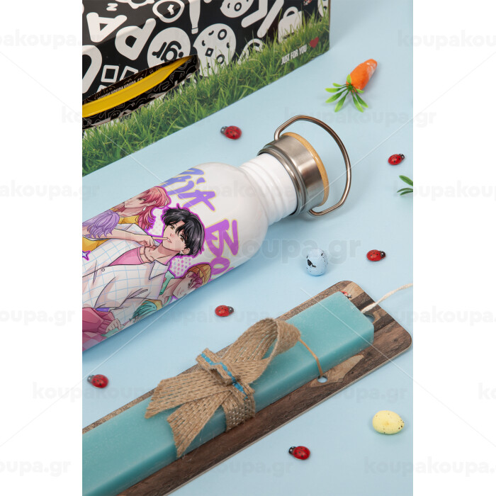 Huntrix Saja Boys, Πασχαλινή Λαμπάδα με παγούρι μεταλλικό (620ml, stainless steel) & κερί αρωματικό πλακέ (30cm) (ΤΙΡΚΟΥΑΖ)
