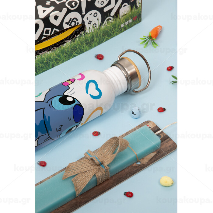 Lilo & Stitch painting, Πασχαλινή Λαμπάδα με παγούρι μεταλλικό (620ml, stainless steel) & κερί αρωματικό πλακέ (30cm) (ΤΙΡΚΟΥΑΖ)
