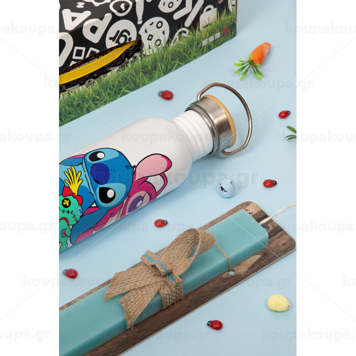 Lilo & Stitch, Πασχαλινή Λαμπάδα με παγούρι μεταλλικό (620ml, stainless steel) & κερί αρωματικό πλακέ (30cm) (ΤΙΡΚΟΥΑΖ)