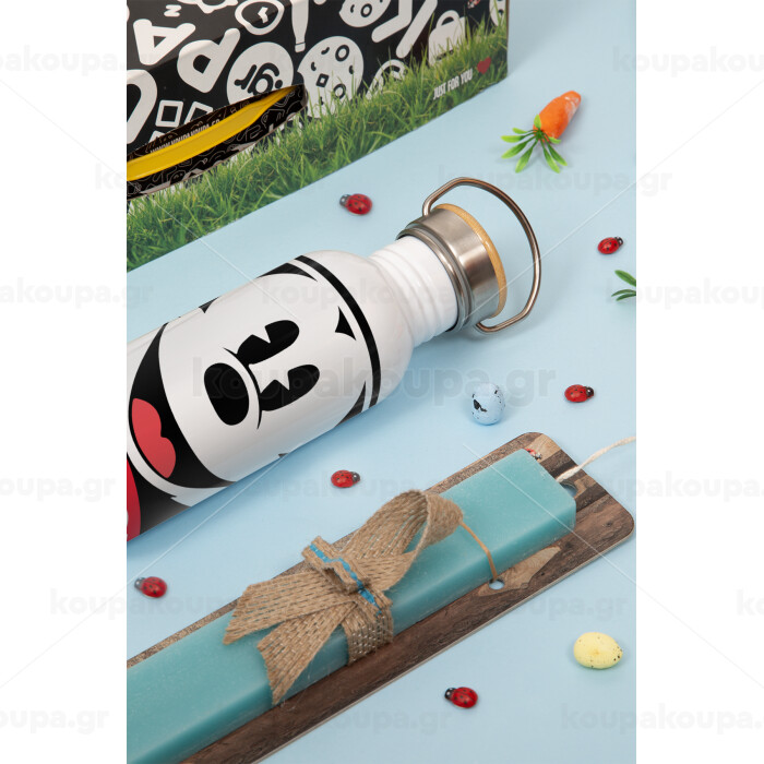Μίκυ Μάους, Πασχαλινή Λαμπάδα με παγούρι μεταλλικό (620ml, stainless steel) & κερί αρωματικό πλακέ (30cm) (ΤΙΡΚΟΥΑΖ)
