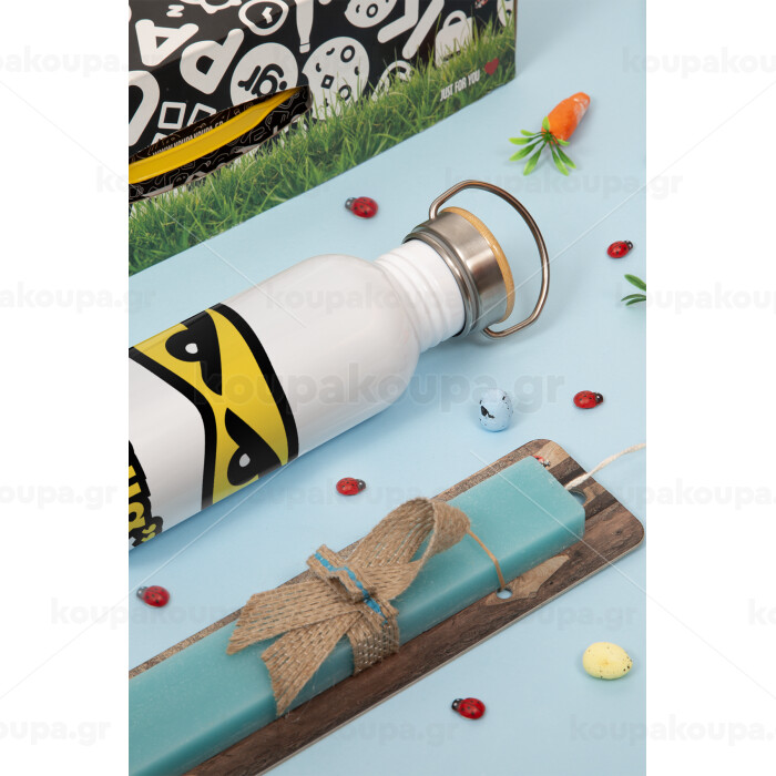 Ninja Eyes με όνομα, Πασχαλινή Λαμπάδα με παγούρι μεταλλικό (620ml, stainless steel) & κερί αρωματικό πλακέ (30cm) (ΤΙΡΚΟΥΑΖ)