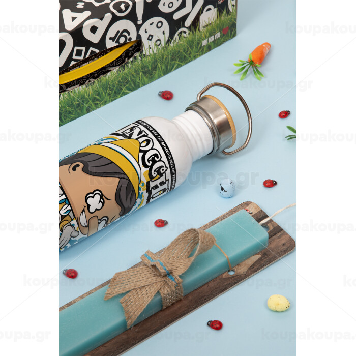 Pinocchio, Πασχαλινή Λαμπάδα με παγούρι μεταλλικό (620ml, stainless steel) & κερί αρωματικό πλακέ (30cm) (ΤΙΡΚΟΥΑΖ)