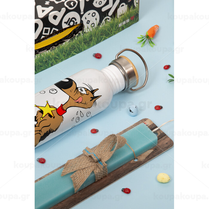 Rantanplan (Ρανταπλάν), Πασχαλινή Λαμπάδα με παγούρι μεταλλικό (620ml, stainless steel) & κερί αρωματικό πλακέ (30cm) (ΤΙΡΚΟΥΑΖ)