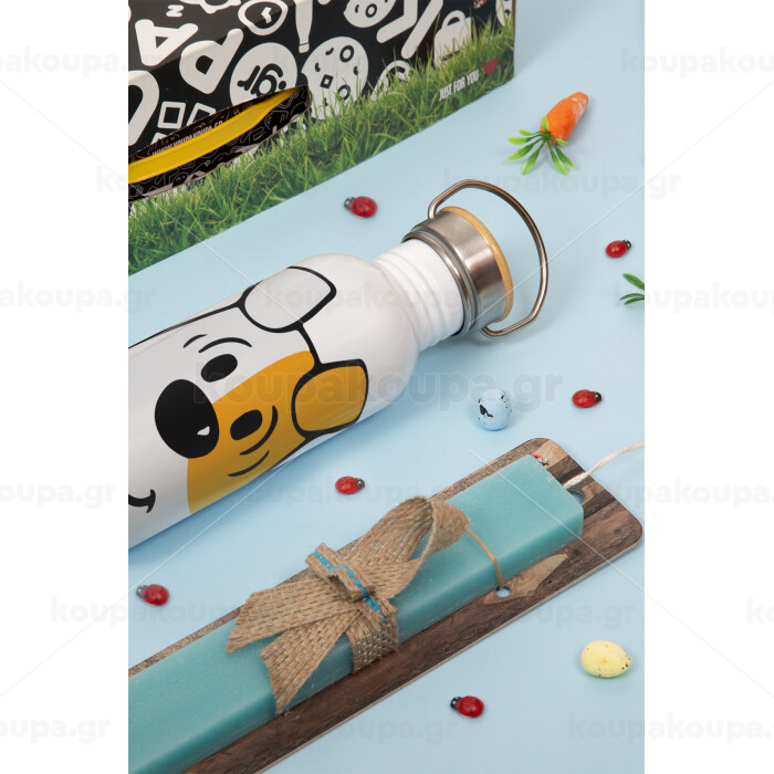 reksio bolek i lolek, Πασχαλινή Λαμπάδα με παγούρι μεταλλικό (620ml, stainless steel) & κερί αρωματικό πλακέ (30cm) (ΤΙΡΚΟΥΑΖ)