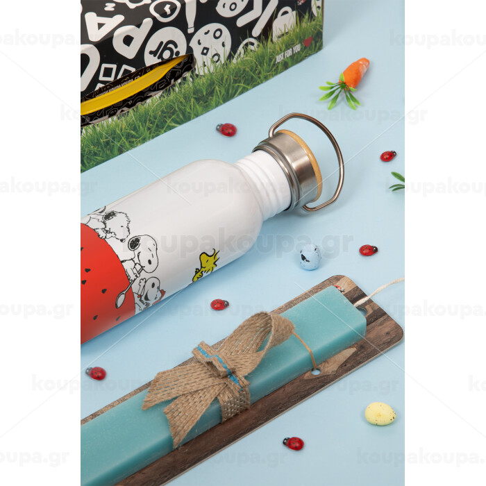 Snoopy summer, Πασχαλινή Λαμπάδα με παγούρι μεταλλικό (620ml, stainless steel) & κερί αρωματικό πλακέ (30cm) (ΤΙΡΚΟΥΑΖ)