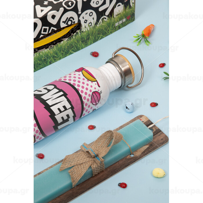SWEET, Πασχαλινή Λαμπάδα με παγούρι μεταλλικό (620ml, stainless steel) & κερί αρωματικό πλακέ (30cm) (ΤΙΡΚΟΥΑΖ)