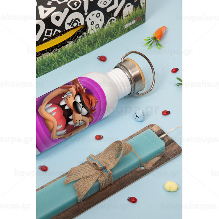 Taz, Πασχαλινή Λαμπάδα με παγούρι μεταλλικό (620ml, stainless steel) & κερί αρωματικό πλακέ (30cm) (ΤΙΡΚΟΥΑΖ)
