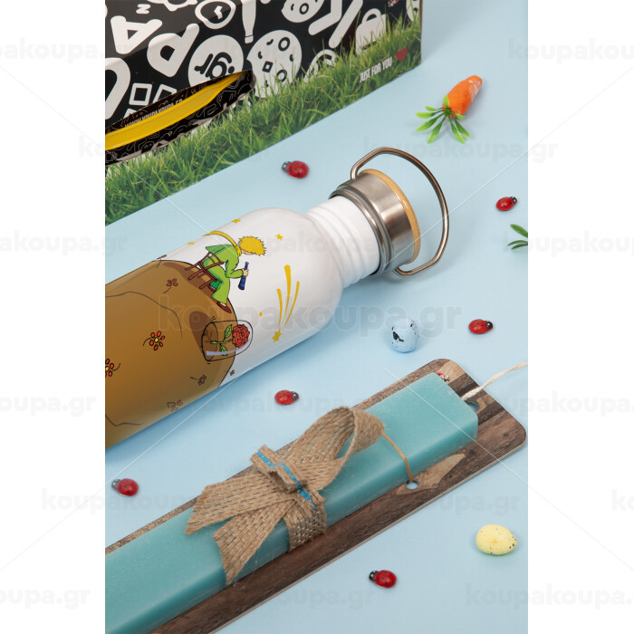 Ο μικρός πρίγκιπας planet, Πασχαλινή Λαμπάδα με παγούρι μεταλλικό (620ml, stainless steel) & κερί αρωματικό πλακέ (30cm) (ΤΙΡΚΟΥΑΖ)