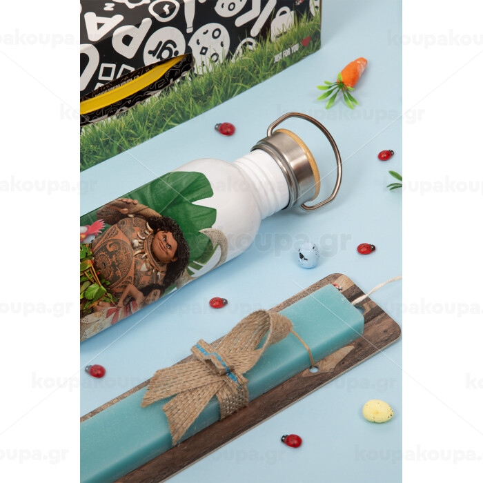 Vaiana, Πασχαλινή Λαμπάδα με παγούρι μεταλλικό (620ml, stainless steel) & κερί αρωματικό πλακέ (30cm) (ΤΙΡΚΟΥΑΖ)
