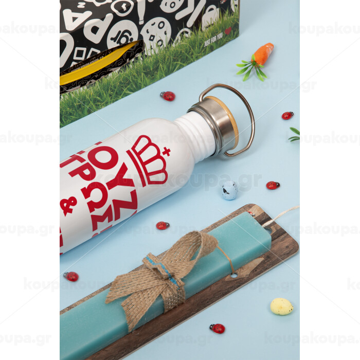 Σούζυ και ψεύδεσαι και τρως, Πασχαλινή Λαμπάδα με παγούρι μεταλλικό (620ml, stainless steel) & κερί αρωματικό πλακέ (30cm) (ΤΙΡΚΟΥΑΖ)