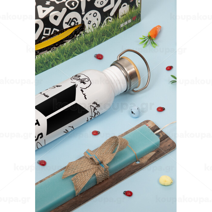 BTS signs, Πασχαλινή Λαμπάδα με παγούρι μεταλλικό (620ml, stainless steel) & κερί αρωματικό πλακέ (30cm) (ΤΙΡΚΟΥΑΖ)